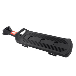Bagageiro em Alumínio de alta resistência com fixação no canote do selim através de 4 parafusos allen. A distância do bagageiro e do selim