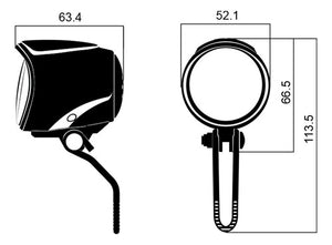 - O Farol tem iluminação por LED garantindo que você tenha uma ótima iluminação nos lugares mais escuros, tendo assim maior visibilidade. Seu direcionamento é focado e permite maior definição do percurso. Uma opção inteligente e econômica para a sua Bicicleta Elétrica.