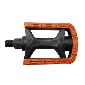 Par de pedais em nylon com esferas. Possui plataforma com garras para uma melhor aderência sobre o pedal e possui refletivos para visibilidade noturna.